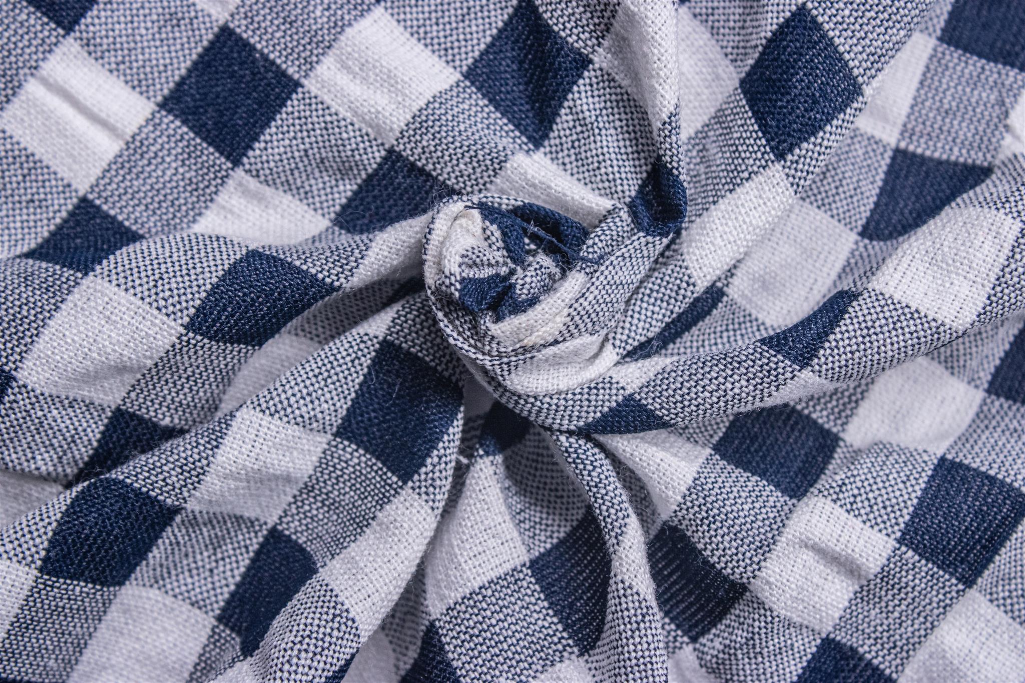 Navy & White Recycled Yarn SeerSucker Gingham Check