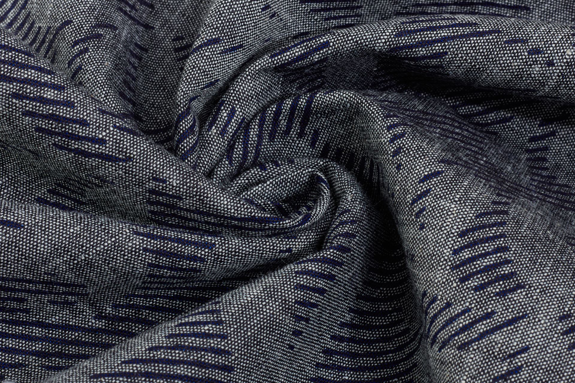Navy Paisely Print On Indigo Cotton Denim Chambray