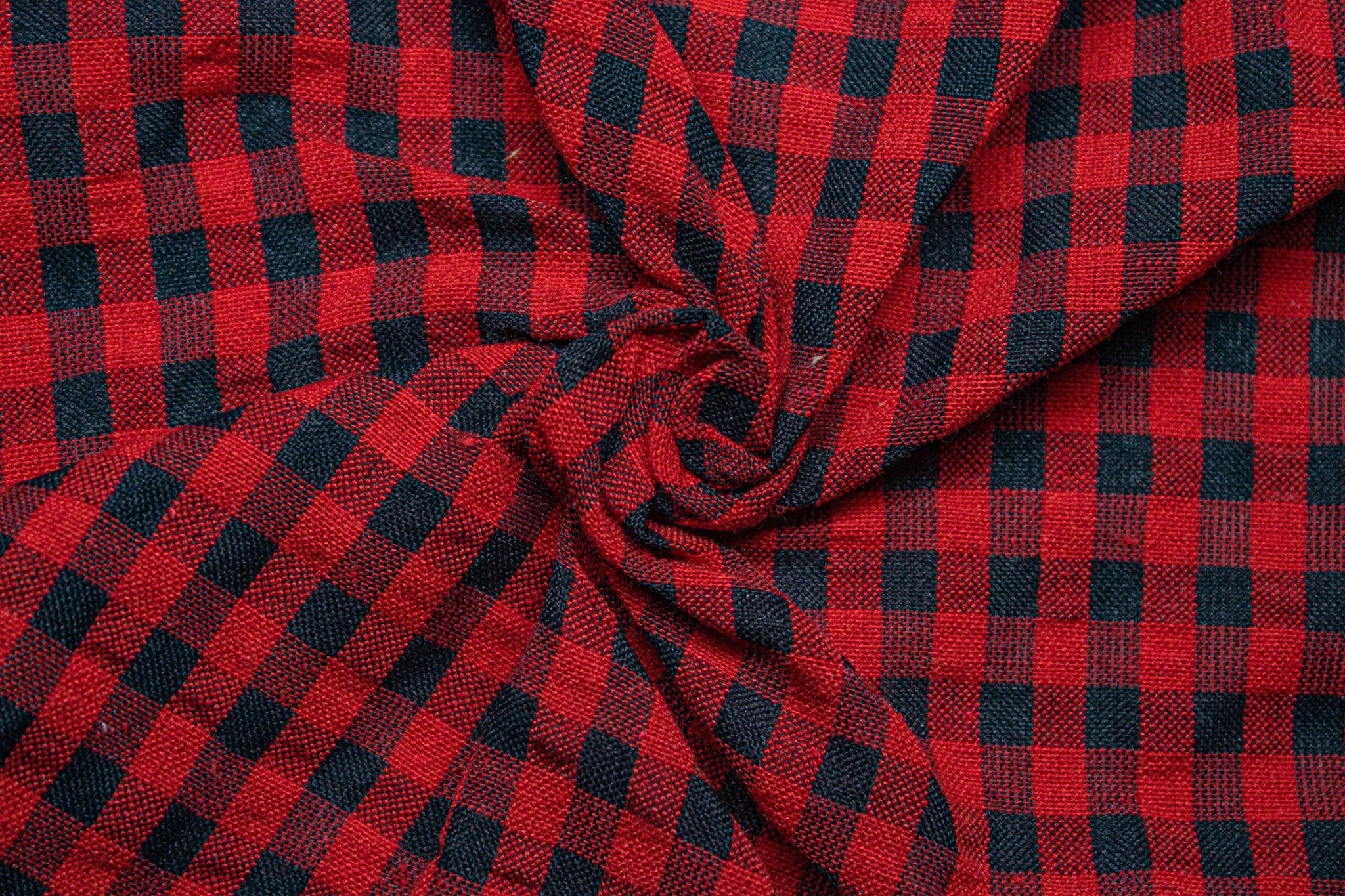 Red & Black Recycled Yarn SeerSucker Gingham Check